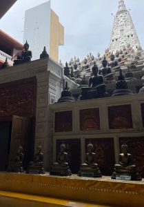 The soft Buddhist chants brought to you on the gentle breeze reach like blessings to your ears. Surprisingly even on a hot sultry afternoon, the premise has a cooling feel. Though visitors are many, everyone maintains the decorum of silence. The Bodhi tree in the center of the temple has a lot of worshippers circling. It is said that Buddha recieved enlightenment under this tree.