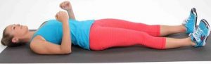 3. External Rotation : Lie flat on your back, arms to your side. Raise them upto the elbow at 90*. Now slowly rotate them to the outside, elbows firmly tucked against your body. Start with a repetition of 5, then you can give it resistance using a 500ml water bottle / 2 pound dumbbell.