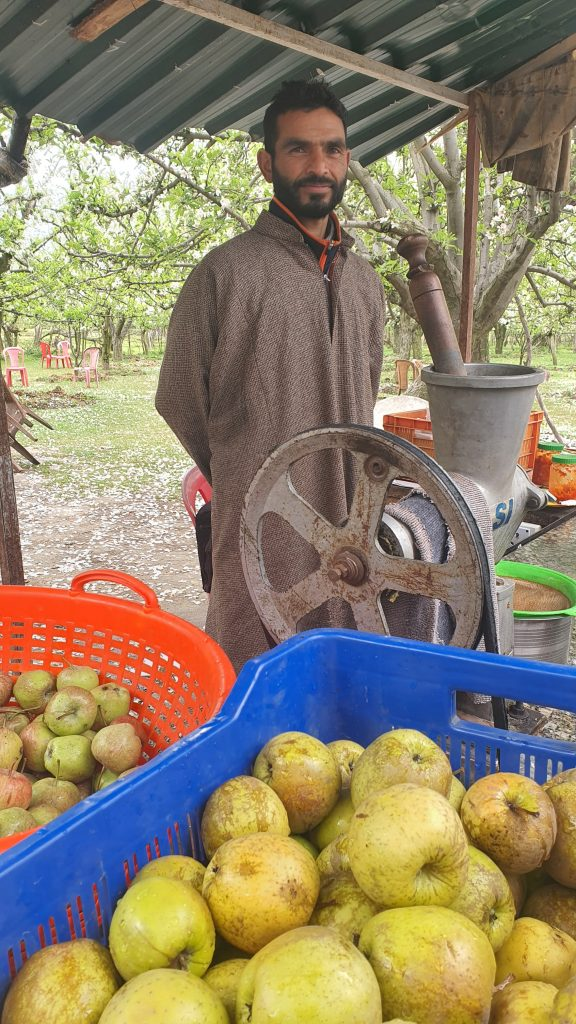Closer to Pahalgam were the apple orchards, in full bloom. Was sight was mesmerizing, and we had to stop to enjoy the fresh apple juice too. It was from the farm into the tummy, simply delicious. Gradually the road winded uphill and there was a nip in the air. The farmlands were left behind and the tall conifers took over. I felt dwarfed as we looked at the majestic ice-capped Himalayas in the backdrop. It was breathtaking.